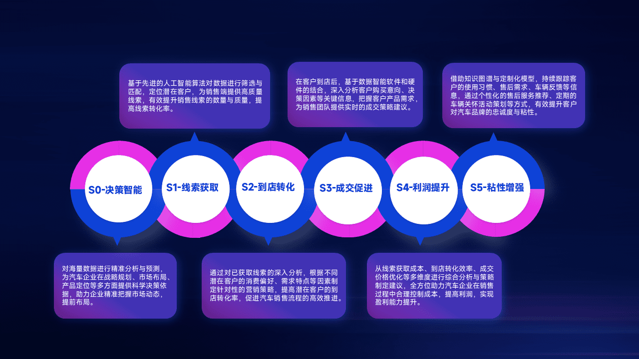 通过拓宽潜在客户来源、、、、优化线索分配并提高到店转化率,,以增强销售效率。。。。同时,,,,利用线索数据不断优化分析模型,,,有效提升转化率,,,,扩大营销影响力。。。。