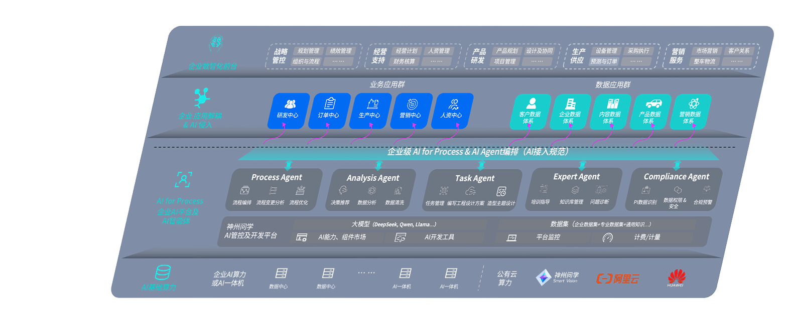 918博天娱乐官网问学智车解决方案是一套基于AI技术的汽车行业智能化系统,,,,覆盖从底层算力到顶层AI应用的全栈方案。。方案由算力层、、、模型层和应用层组成:算力层,,,,方案支持多种一体机配置,,,,具备云端灵活部署、、、、多云适配以及动态优化计算资源的能力;模型层,,918博天娱乐官网问学平台版提供了企业级AI应用一站式构建与管理平台,,,,支持基于后训练强化技术的汽车企业专属模型的训练、、、评测和运营;应用层,,918博天娱乐官网问学DeepSeek版提供包括超级员工、、、、智能招采、、、智能营销、、智能客服、、AI for BI等一系列解决方案,,,,可助力汽车行业实现数字化转型,,,,让管理更智能、、、、响应更敏捷。。